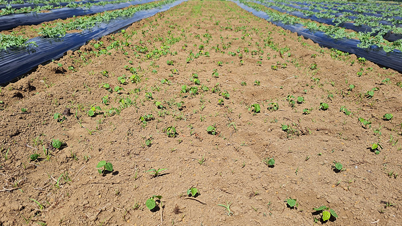 A photo of velvetleef seedlings in a melon crop. Photo credit: Courtesy of Sally Linton.